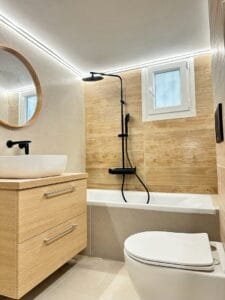 Ανακαίνιση μπάνιου – Λευκό μάρμαρο και minimal αισθητική Πριν την ανακαίνιση: Ο χώρος διέθετε παλαιά πλακίδια και παλιές εγκαταστάσεις, με αποτέλεσμα μειωμένη λειτουργικότητα και όχι επαρκή φωτεινότητα. Μετά την ανακαίνιση: Το μπάνιο απέκτησε καθαρές γραμμές, φωτεινές επιφάνειες και σύγχρονη minimal εικόνα, με έμφαση στην άνεση και τη λειτουργικότητα. . Δάπεδο &