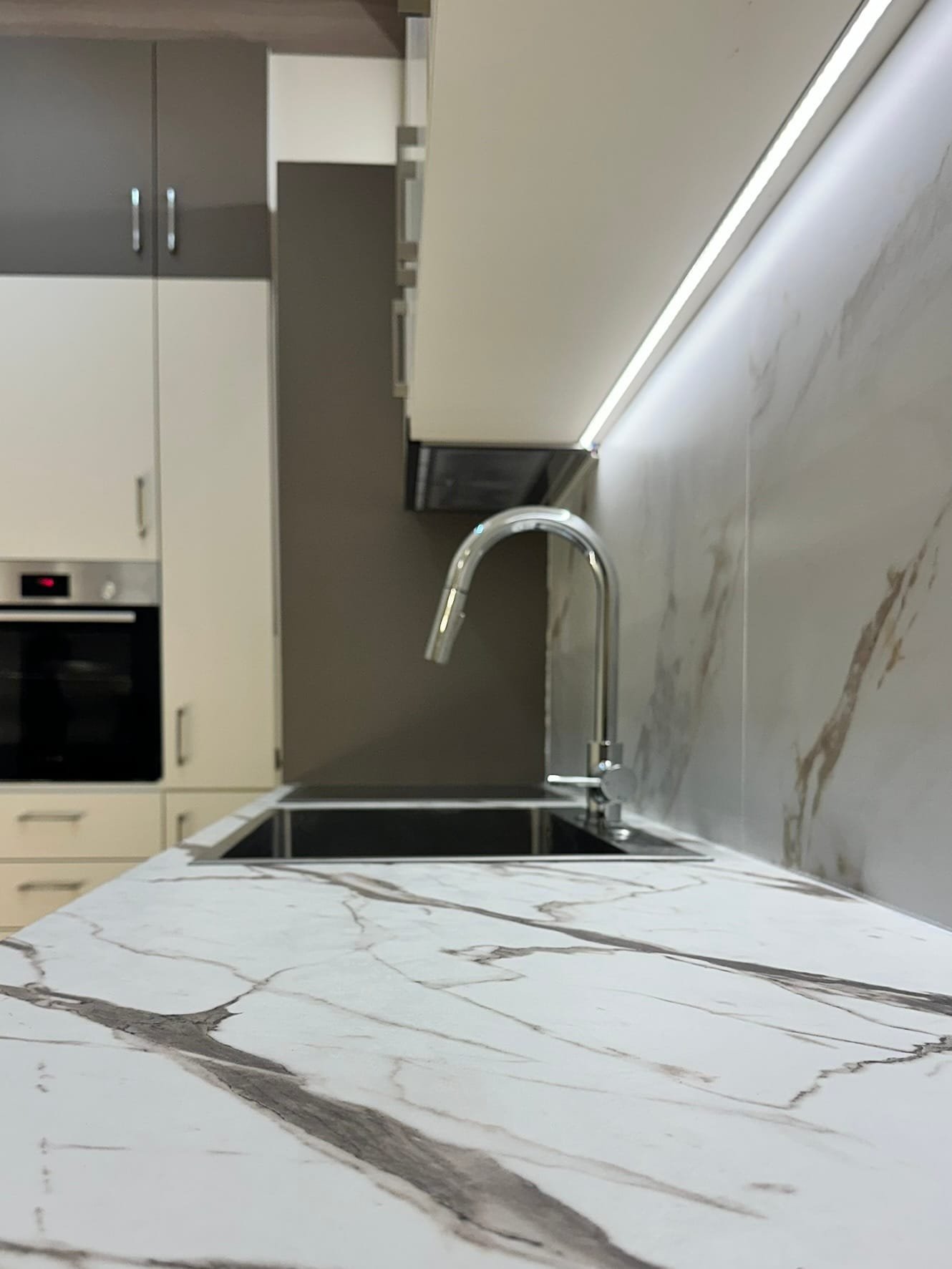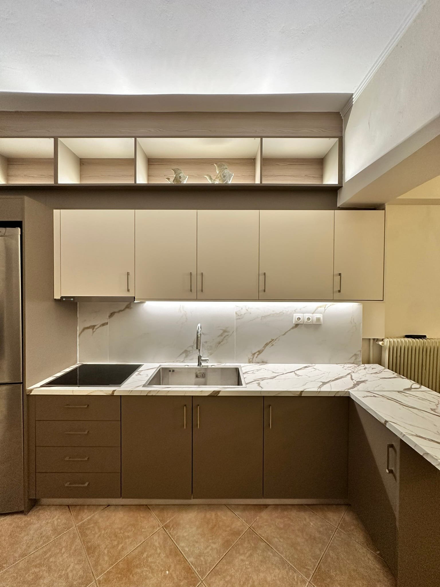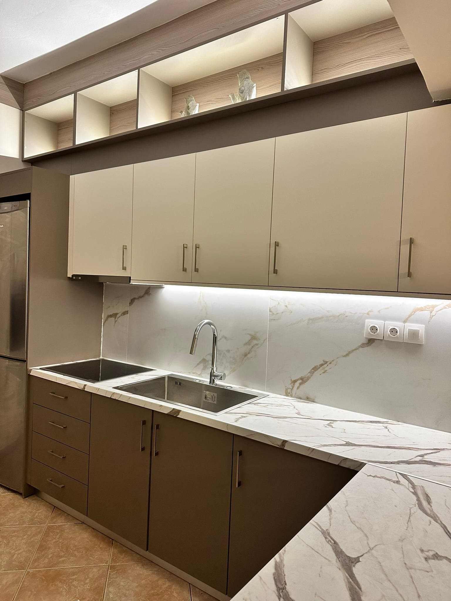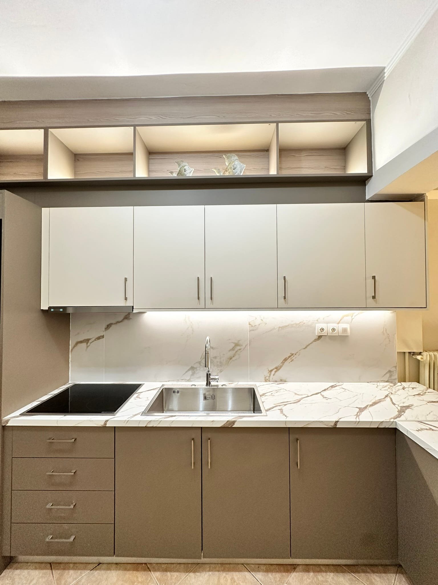 Κρυφός φωτισμός LED επάνω από τα ντουλάπια.